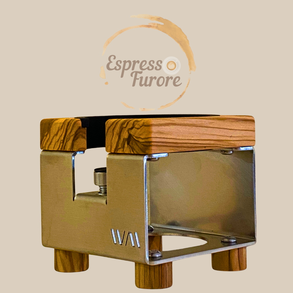 Wiedemann Manufaktur Tamperstation aus Edelstahl und Olivenholz